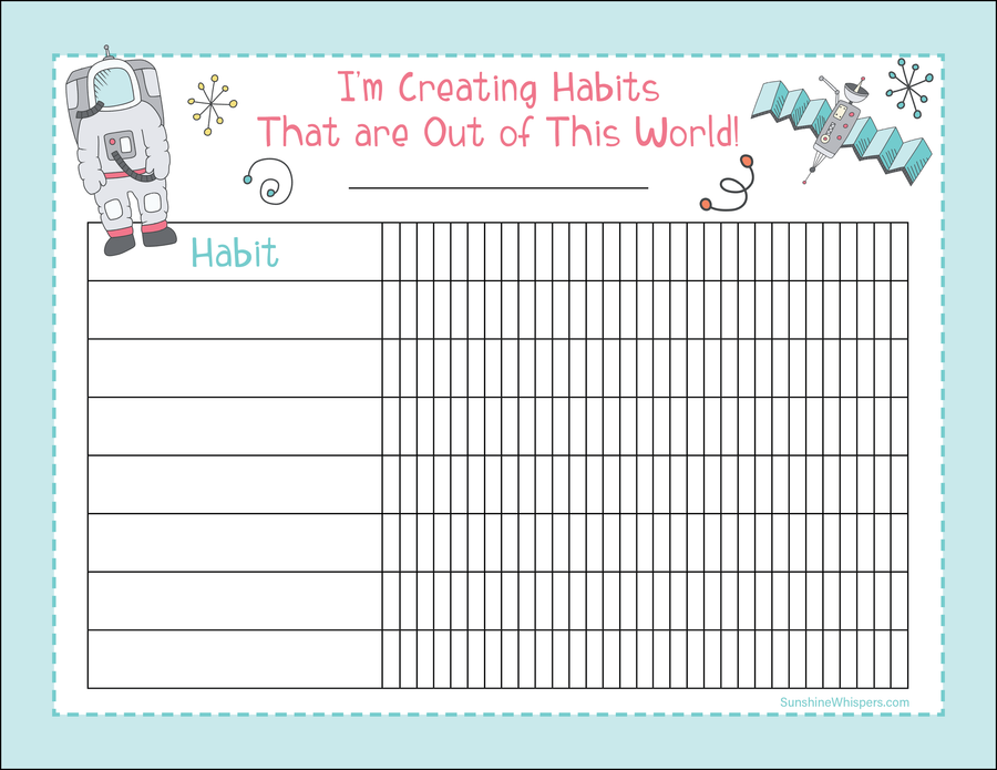 If you are trying to get your kids to track a good habit (like doing homework, reading, being active, etc...) this is a fun way to do it. This space-themed habit tracker for kids would be perfect to stick on the fridge or bulletin board and let you kids see their progress on a consistent basis!